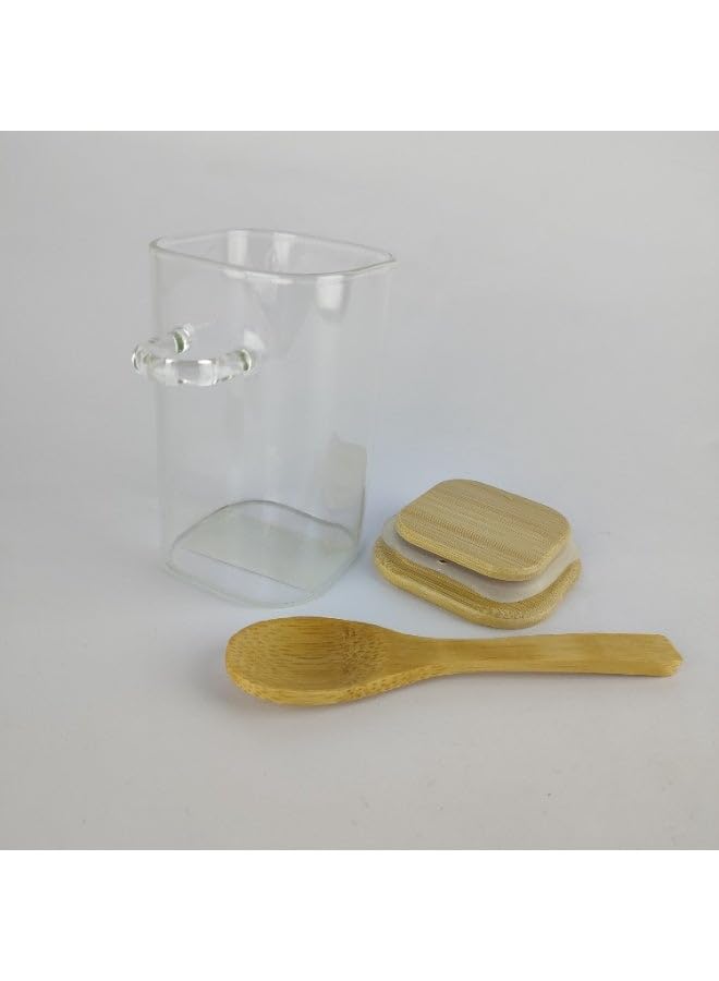 Generic - برطمان تخزين زجاجي بغطاء خشبي محكم الغلق وملعقة خشبية - تصميم انيق للمطبخ