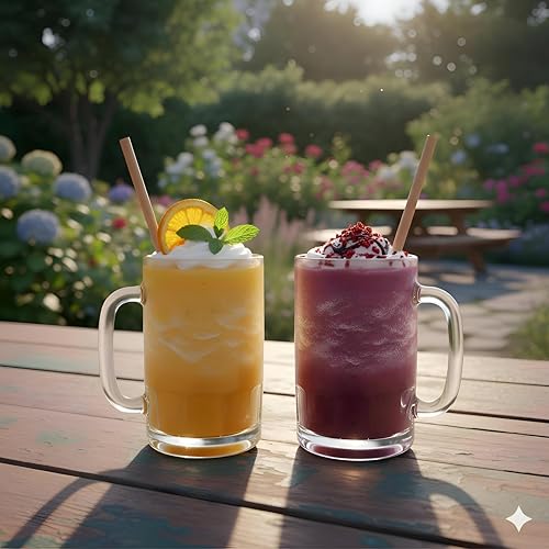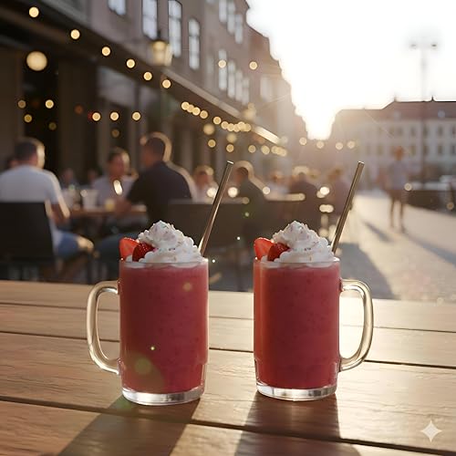 - حجمها الكبير وتصميمها الأنيق يجعلها مناسبة ليس فقط للعصائر ولكن أيضًا للكوكتيلات الإبداعية والحليب المخفوق والحلويات ذات الطبقات مثل عوامات الأوريو.