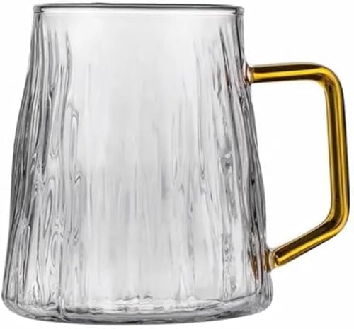 H-Home - مج زجاج كبير للشاي والقهوة والمشروبات الباردة بمقبض بلون أصفر - 400 مل - شكل مخروطي (2)