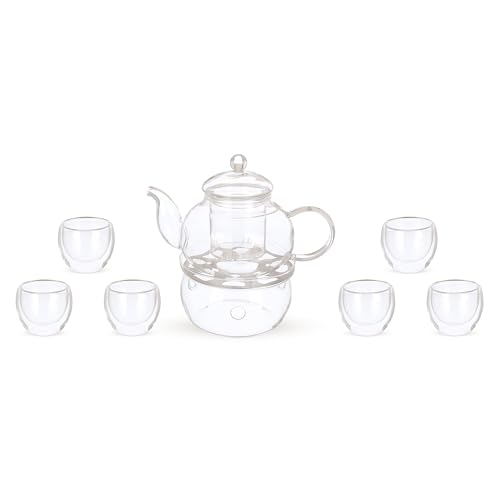 Generic - وعاء شاي زجاج مع مسخن، وعاء قهوة عربية مزدوج الجدار من 9 قطع، إبريق شاي و6 أكواب، لون شفاف