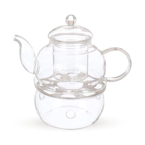 - مجموعة كاملة: طقم شاي زجاجي أنيق مكون من 9 قطع بما في ذلك إبريق شاي شفاف مع سخان و6 أكواب مزدوجة الجدران لخدمة العديد من الضيوف