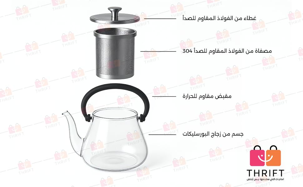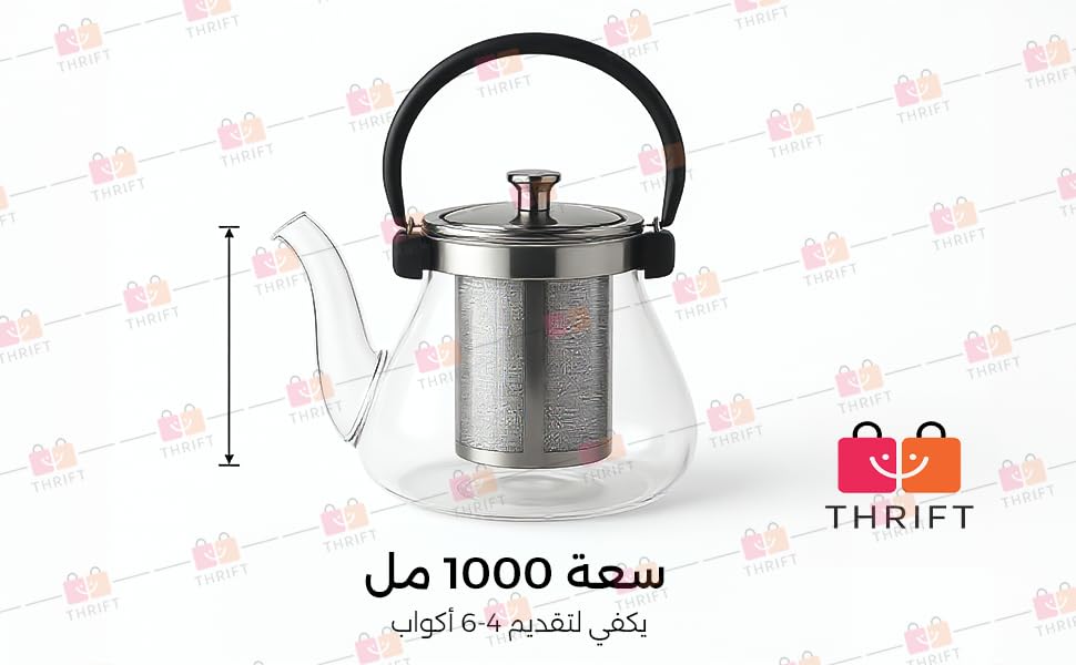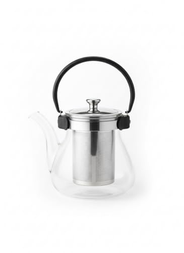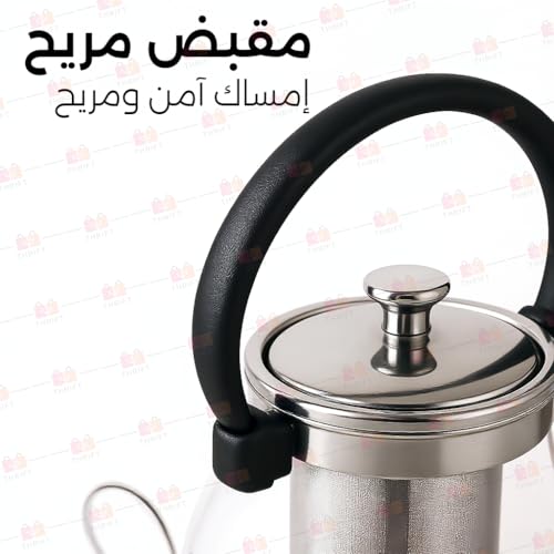 Thrift - إبريق شاي زجاجي مع مصفاة من الفولاذ المقاوم للصدأ، غلاية من زجاج البوروسيليكات المقاوم للحرارة بسعة 1 ل بيد مريحة آمنة للاستخدام على البوتاجاز لأوراق الشاي السائبة وأزهار الشاي (4 إلى 6 كوب)