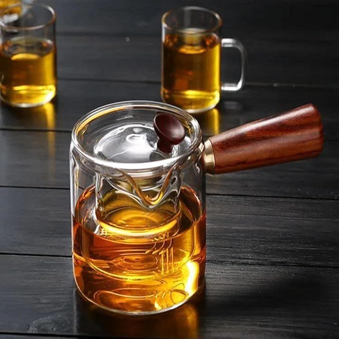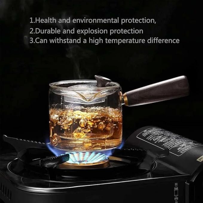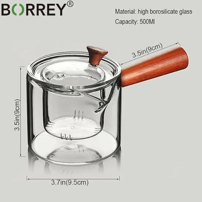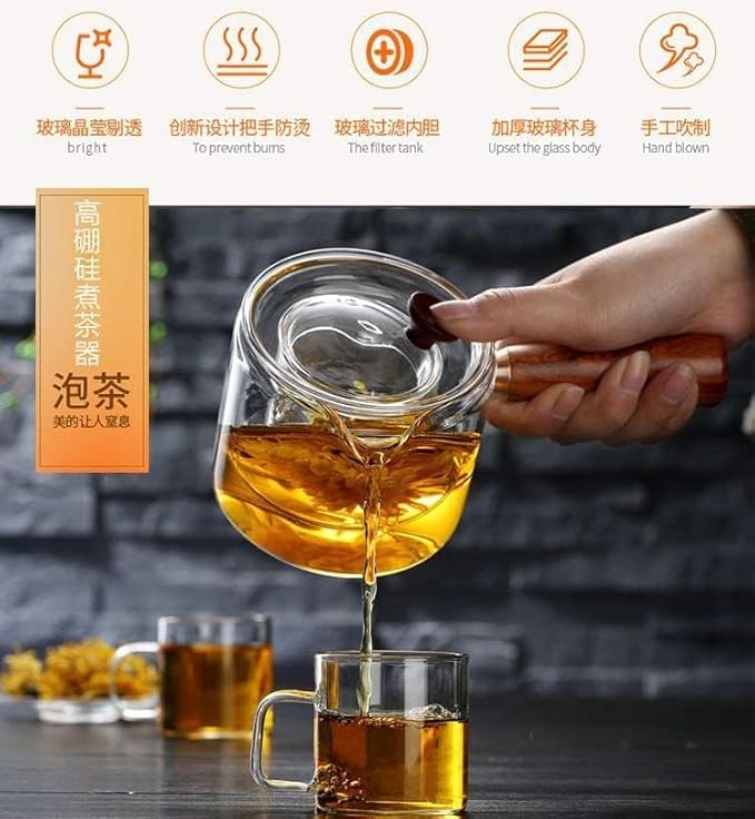 - مزايا التصميم: إبريق شاي زجاجي على الطراز الياباني مع مقبض جانبي خشبي أنيق لصب مريح وحماية من الحرارة