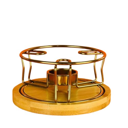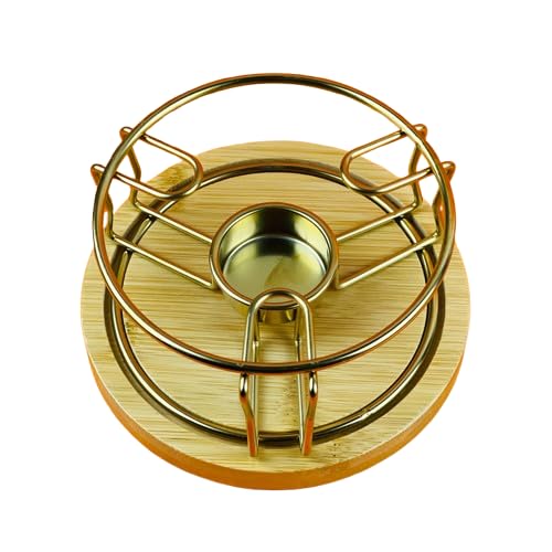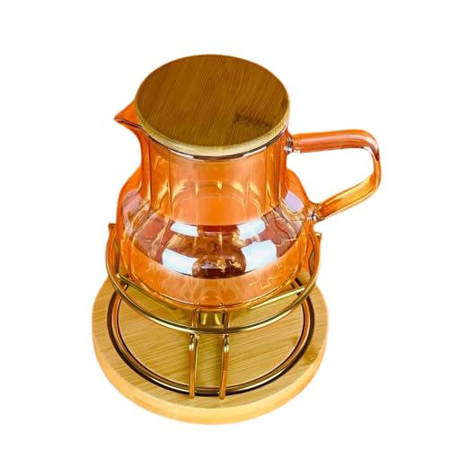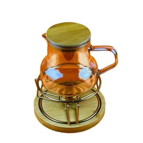 Generic - إبريق حراري زجاجي بغطاء خشبي، سعة 600 مل، حامل معدني، لون عسلي