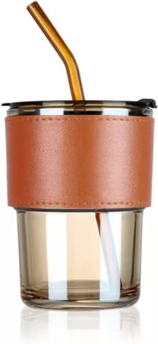 Spaceshoop - كوب من الزجاج محكم الاغلاق بتصميم عصري، مج مزود بشفاطة زجاجية للمشروبات الساخنة والباردة والشاي والقهوة والعصائر وعصير الفاكهة، سعة 435 مل - لون بني فاتح