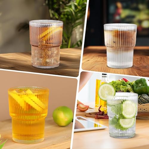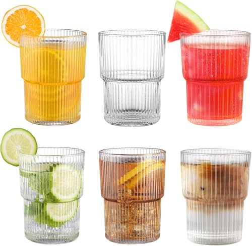 Generic - طقم أكواب زجاجية - 6 أكواب سعة 300 مل - منقوش بخطوط مضلعة - تصميم شفاف عصري - مناسب للعصائر والماء والكوكتيلات - زجاج مقاوم للحرارة وسهل التنظيف (شفاف, مليلترات, 300)