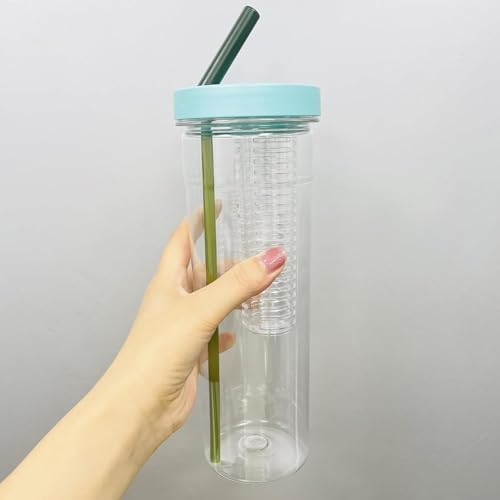 Generic - كوب زجاجي مع مصفاة سعة 700 مل، متعدد الألوان، علامات قياس، شفاطة قابلة لإعادة الاستخدام