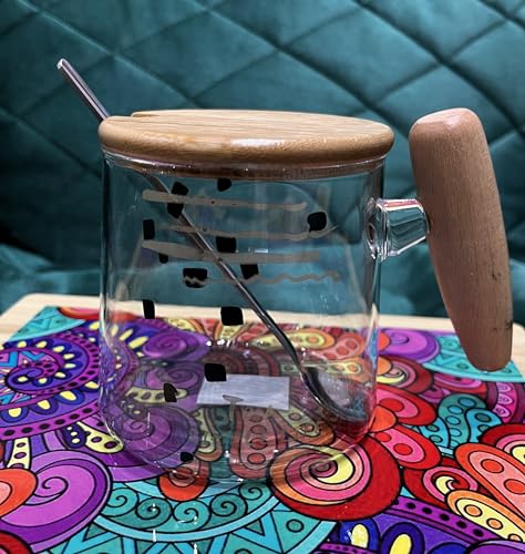 Generic - كوب زجاجي بغطاء وغطاء خشبي أكواب مياه قابلة لإعادة الاستخدام قهوة زجاج خارجي للعصير والسموذي والشاي بمقبض 2