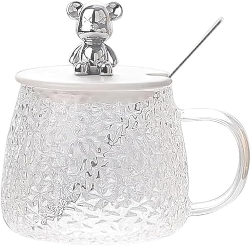 Spaceshoop - كوب زجاجي مع ماصة وغطاء على شكل دب تيدي فضي لطيف للمشروبات الساخنة والباردة والشاي والقهوة وعصير الفاكهة ملعقة - زجاجية 2