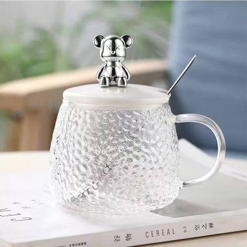 Generic - كوب زجاجي مع ماصة وغطاء على شكل دب تيدي فضي لطيف للمشروبات الساخنة والباردة والشاي والقهوة وعصير الفاكهة ملعقة - شفاطة زجاج 3