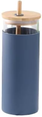 Generic - كوب زجاجي مع غطاء من البابمو وشفاطة بسعة 473 مل للقهوة المثلجة قابل لإعادة الاستخدام وعصائر السموذي مع حافظة واقية من السيليكون وخال من البيسفينول أ (أزرق غامق)