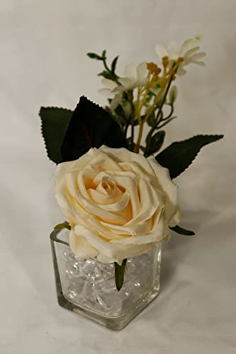 Generic - فازه زجاجيه مع ورده بلدي بيضاء