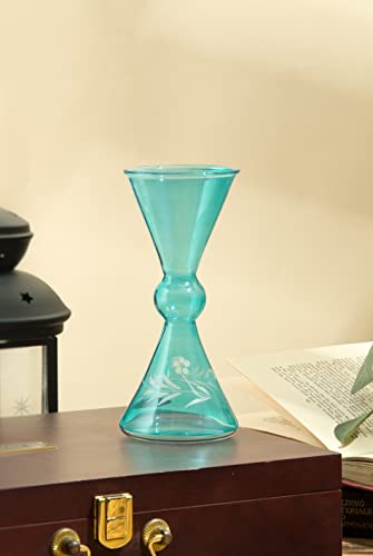 Ornamenta - مزهرية زجاجية - زهور - ديكور عصري لمنتصف القرن - رف - قطعة مركزية للطاولة لغرفة الطعام - مزهريات للديكور - ارضية - الكتب - محفورة - لطاولة أزرق