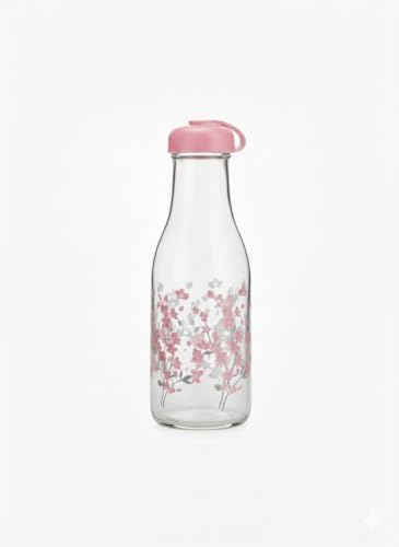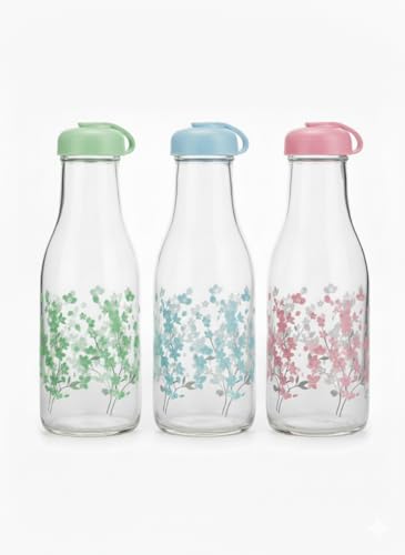 Generic - زجاجة شرب مياة زجاجية 1 لتر - شفاف (٣قطع) (زهور)
