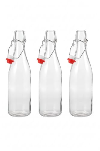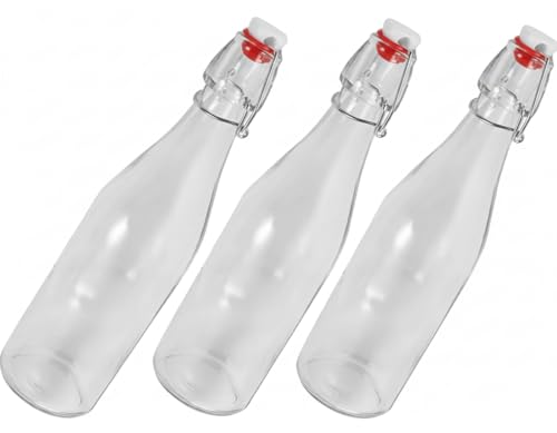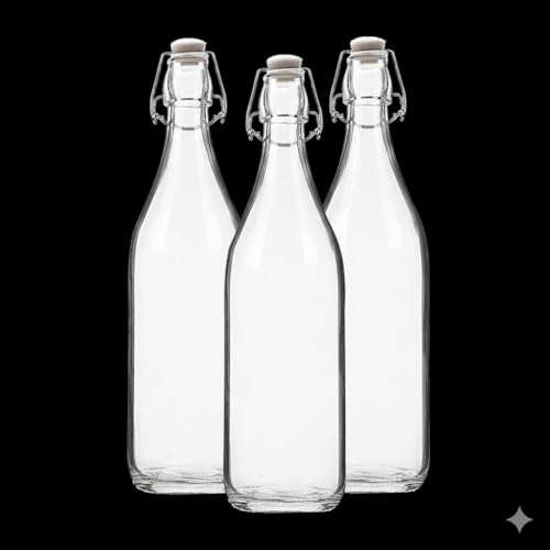 Generic - زجاجة شرب مياة زجاجية 1 لتر - شفاف (٣قطع) (بسدادة)