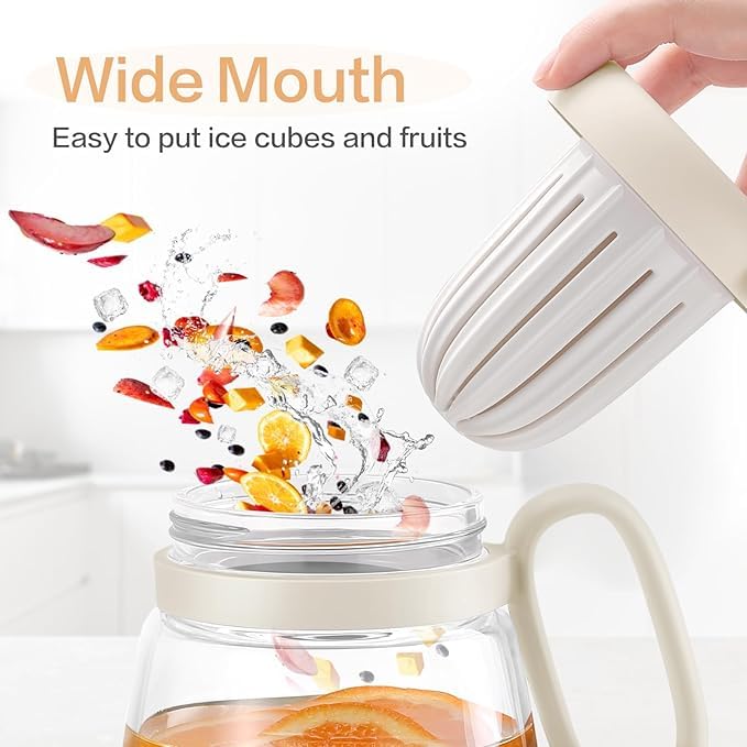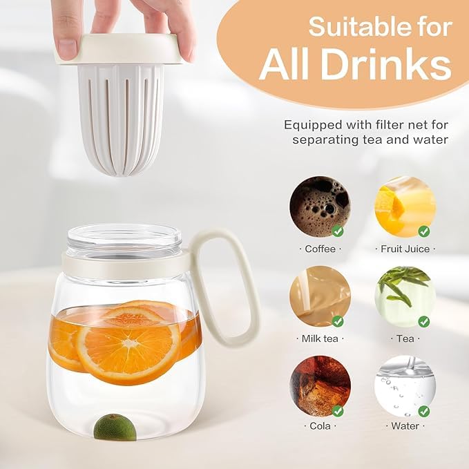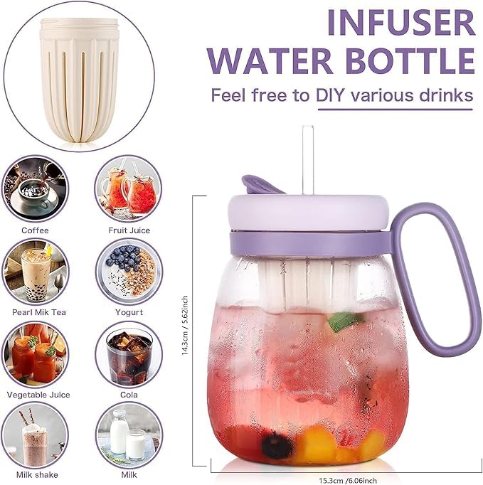 Generic - زجاجة مياه زجاجية، اكواب زجاجية مع ماصة، مصفاة شاي ومقبض، اكواب سفر بسعة كبيرة للقهوة المثلجة والعصير والماء والشاي (ابيض)