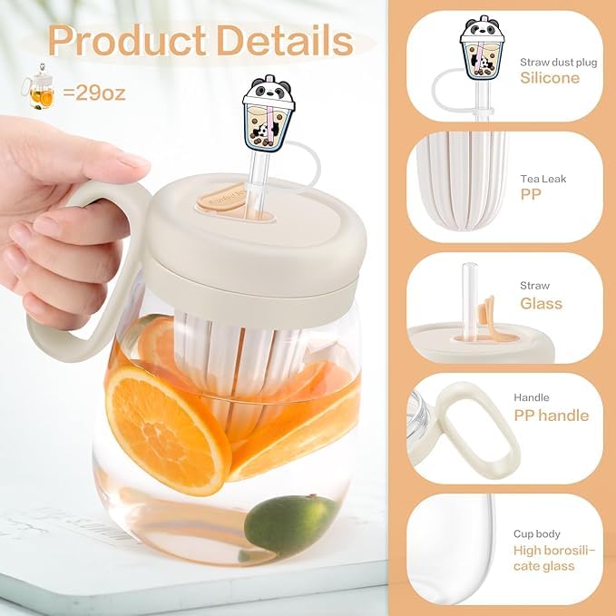 - زجاج ممتاز مقاوم للحرارة: مصنوع من زجاج عالي الجودة يتحمل التغيرات المفاجئة في درجات الحرارة - مثالي للشاي الساخن والقهوة المثلجة وشاي الفقاعات والعصائر المنعشة. ملحقات مدروسة: يأتي كل كوب مع غطاء آمن وماصة قابلة لإعادة الاستخدام وغطاء ماصة ساحر بطابع كرتوني مع حماية من الغبار - مما يحافظ على كل رشفة نظيفة وخالية من الانسكاب. سعة كبيرة: مع سعة كبيرة 29 اونصة، استمتع بكميات أكبر من مشروباتك المفضلة دون إعادة تعبئة مستمرة. مقبض مريح: مصمم هندسيًا لقبضة آمنة وغير قابلة للانزلاق - لا مزيد من التعامل المحرج مع المشروبات الساخنة أو الباردة.