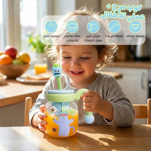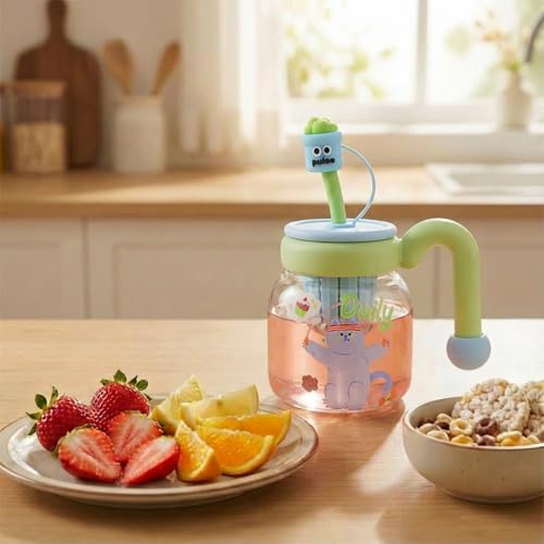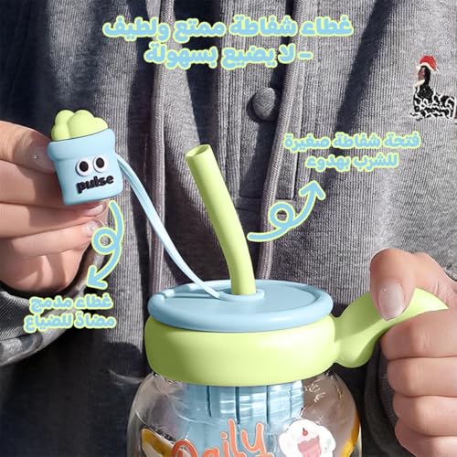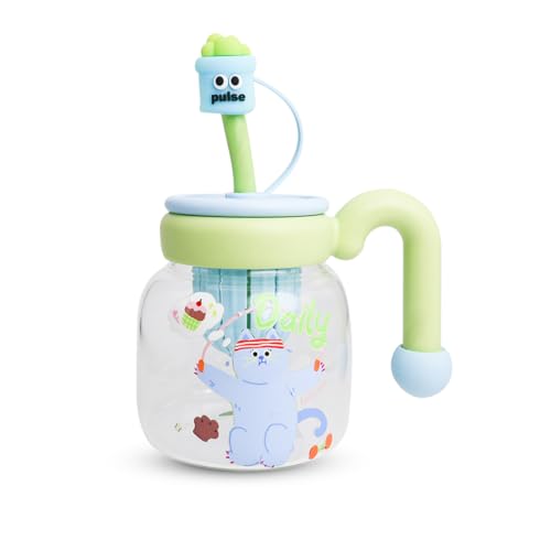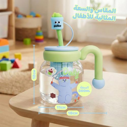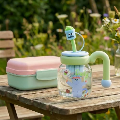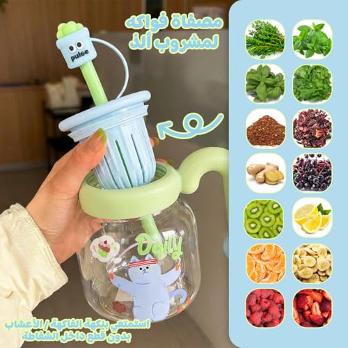 Generic - زجاجة مياه زجاجية مع ماصة ومقبض، كوب مصفاة 860 مل، زجاجة شرب قابلة لاعادة الاستخدام مانعة للتسرب مع غطاء سهل الامساك للعصير والحليب والشاي، للاستخدام الداخلي والخارجي، GG-2533 (اخضر مينت فاتح وازرق