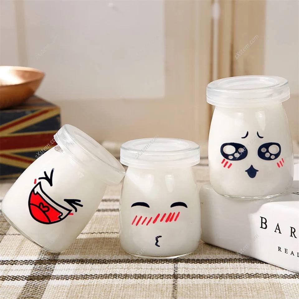 - تصميم جذاب: أكواب زبادي زجاجية بوجوه كرتونية لطيفة ومتنوعة تضيف المرح لوقت تناول الطعام وتجعلها مثالية للأطفال والكبار