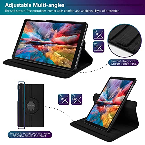 Glaxx - جراب قابل للطي متوافق مع سامسونج جالاكسي تاب S6 لايت 10.4 بوصة مزود بمسند للضبط بزوايا متعددة حتى 360 درجة لرؤية كاملة من جلاكس - أسود جلد صناعي