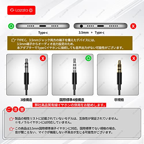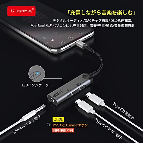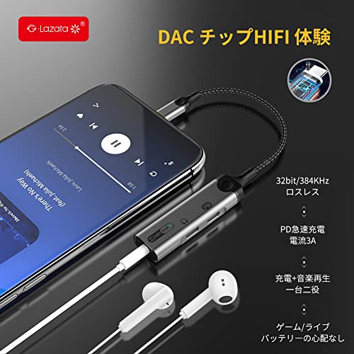 Glazata - جلازتا محول سماعة اذن 3 في 1 32 بت 384 كيلو هرتز هاي فاي مخرج موسيقى بدون فقدان / مكالمة صوتية / تحكم في مستوى الصوت 3 في 1 "شحن من النوع C + مخرج سماعة اذن من النوع C + مخرج صوت 3.5 ملم"