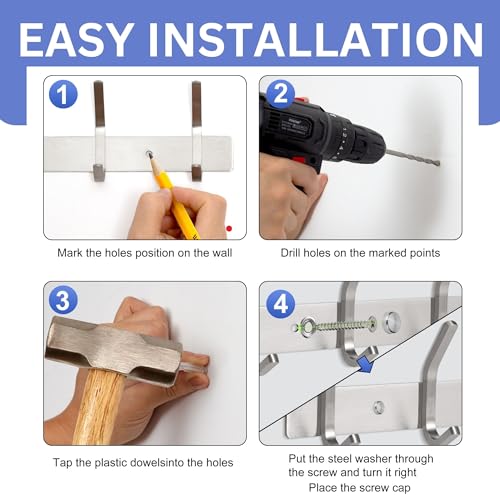 - سهل التركيب: خطافات المعاطف للحائط الخاصة بنا سهلة التركيب. قم بتثبيت حامل المعاطف على الحائط واحفر الثقوب ثم ضع غطاء المسامير وأدخل المسمار من الخطاف في الحائط ثم شد الخطافات بإحكام. توفر هذه الخطافات مظهر ساحر لغرفتك.