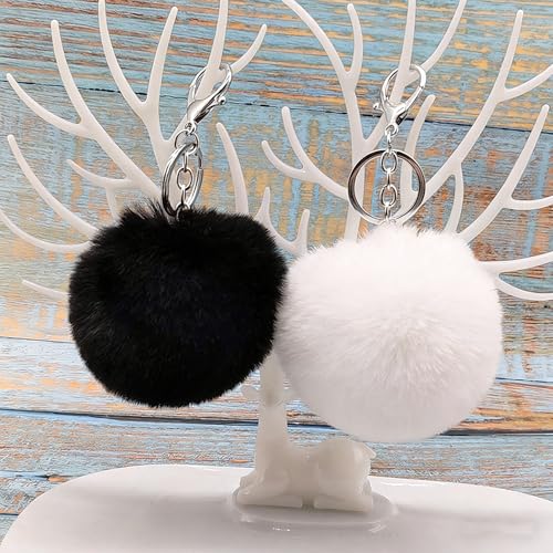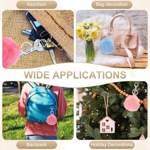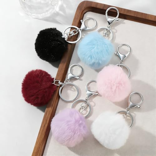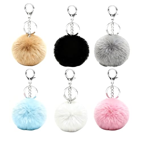 Glimbely - 6 قطع من حلقات مفاتيح بوم بوم منفوشة من جليمبيلي، دلايات شنطة يد من الفرو المخملي، سلسلة مفاتيح السيارة، اكسسوارات للنساء