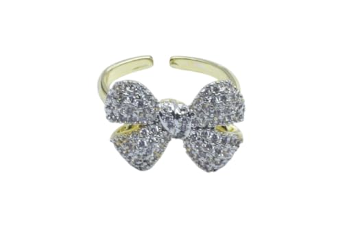 Generic - خاتم بلاتينيوم بتصميم فيونكة لامعة للنساء، لون ذهبي - خاتم 50