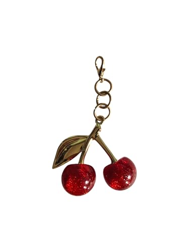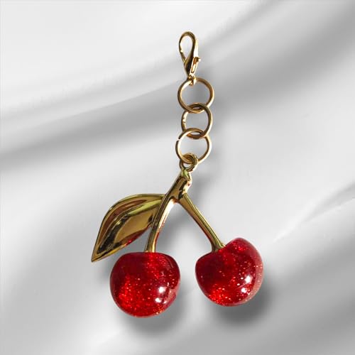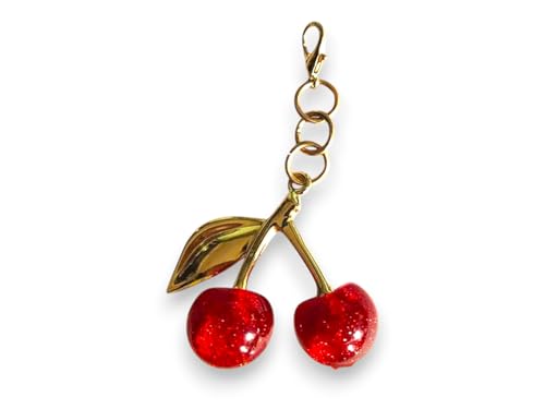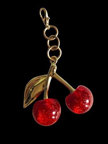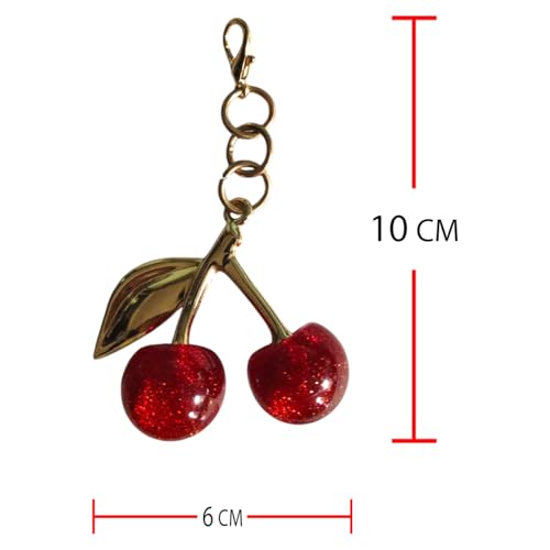 Generic - حلية كرز لامعة للحقائب، أكريليك أحمر وذهبي، تصميم كلاسيكي براق،10× 6 سم، مزينة بالجليتر