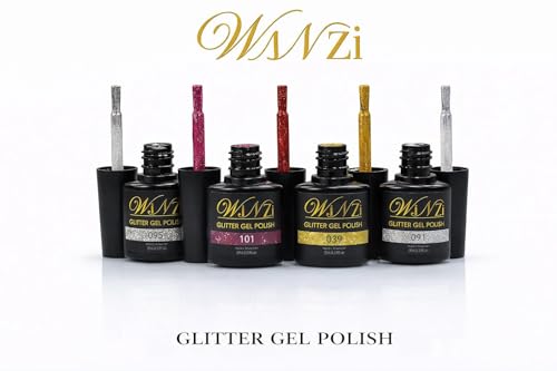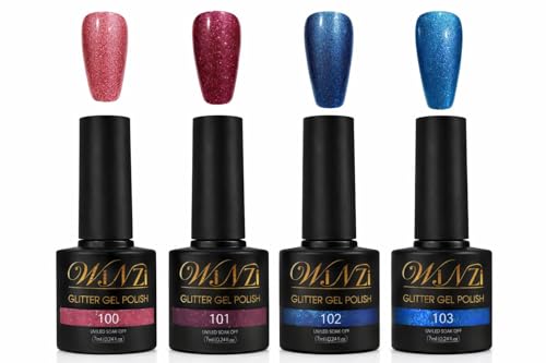 WINZI - مجموعة طلاء اظافر جل جليتر مكونة من 4 قطع، لون بورغندي زهري لامع وظلال زرقاء، جل نقع LED بالاشعة فوق البنفسجية، لمسة نهائية لامعة للغاية، مانيكير صالونات التجميل والمنزل، 7 مل لكل منها (100، 101، 102