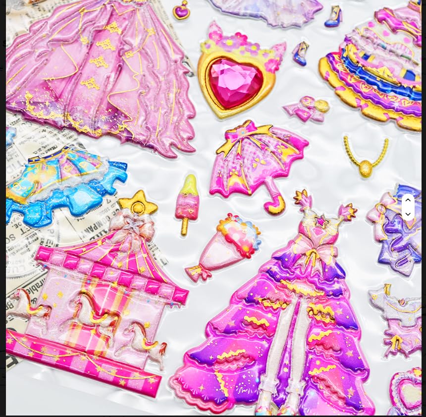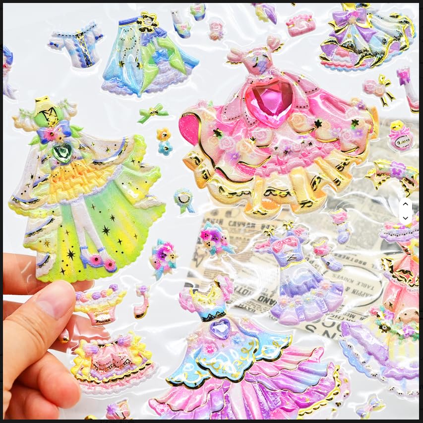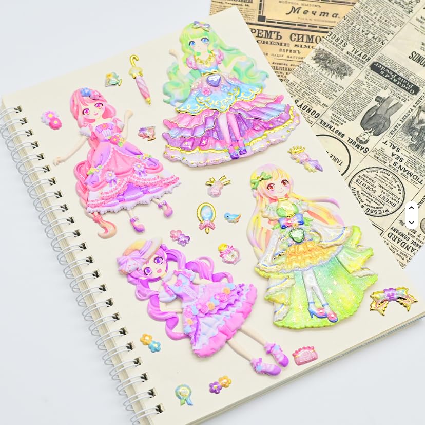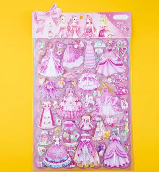 Generic - مجموعة ملصقات ثلاثية الأبعاد بتصميم أميرات "المانجا" اللامعة -ازرق-وبينك