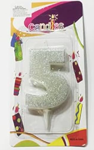 Generic - شمعة عيد ميلاد لامعة بلون فضي ومزينة بالجليتر رقم 5