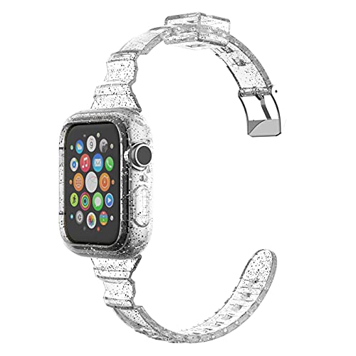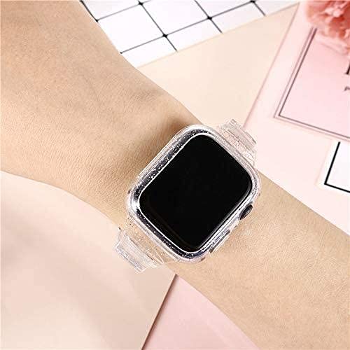 Generic - سوار ساعة شفاف لامع من السيليكون (44/40 ملم) مع جراب حماية لساعة ابل ووتش سيريز 6 5 4 اس اي, slim