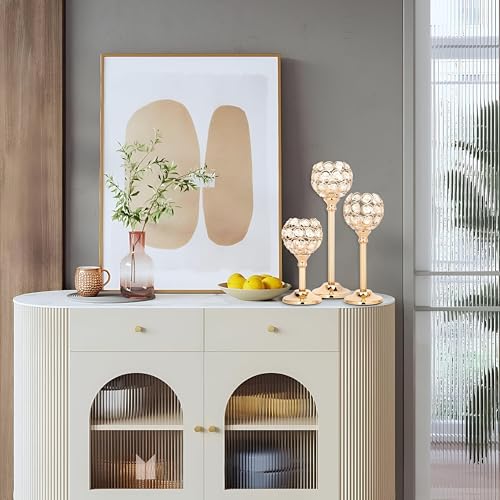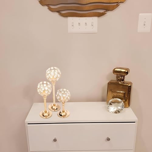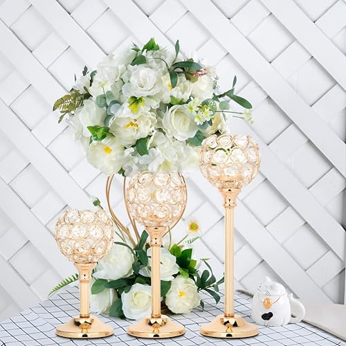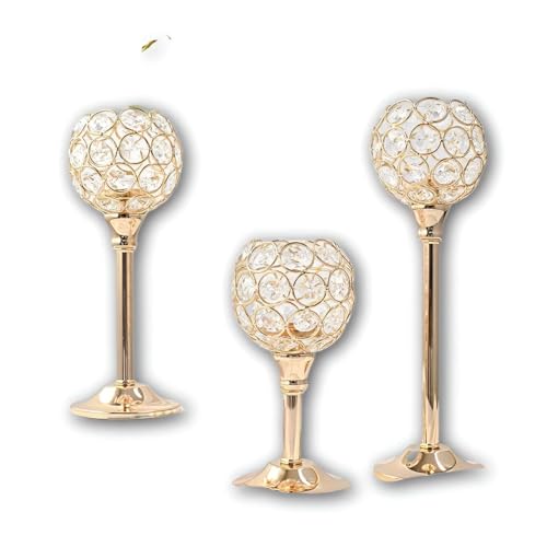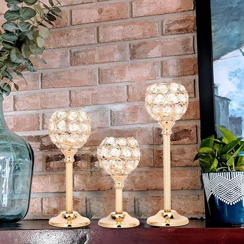 Generic - حوامل شموع كريستال لامعة - مجموعة من 3 قطع لتزيين طاولات الزفاف والخطوبة والعشاء