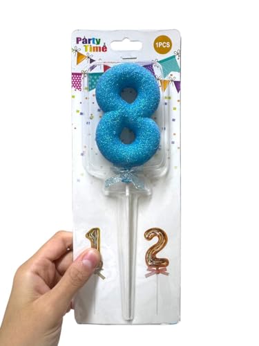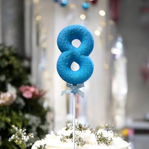 Generic - شمعة عيد ميلاد زرقاء لامعة مع فيونكة فضية، لتزيين الكيك (8)