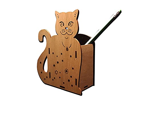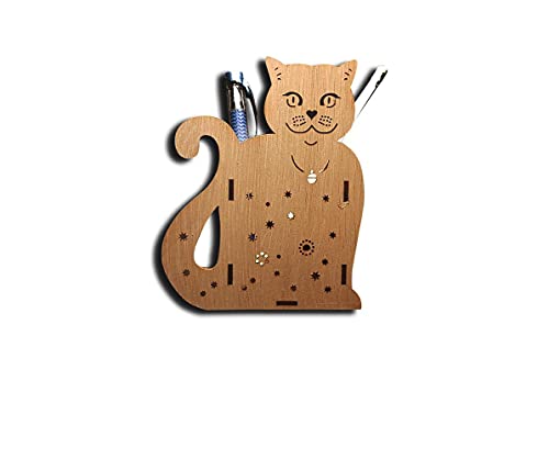 Global Crafters - مقلمه خشبيه ليزر ادوات واكسسوار مكتبي شكل قطه