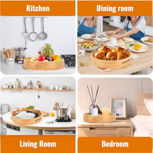 - هيكل متين من الخيزران: مصنوع من خشب الخيزران الصلب، يوفر منظم الصينية هذا دورانًا قويًا ودعمًا لجميع الوجبات الخفيفة والتوابل والأعشاب وأكثر من ذلك