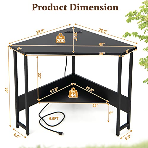 GLOBALWAY - مكتب زاوية مع قاعدة شحن ومنفذ USB من جلوبال واي، محطة عمل كمبيوتر مثلثة 90 درجة مع رف تخزين، إطار معدني، مكتب لاب توب موفر للمساحة للمساحات الصغيرة والمكتب المنزلي (أسود)
