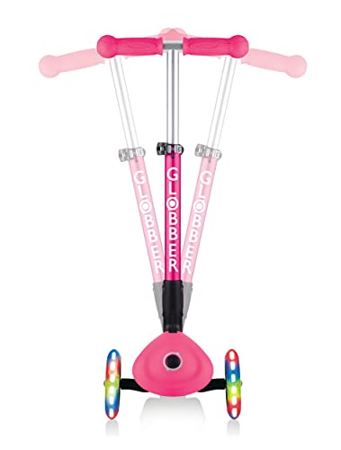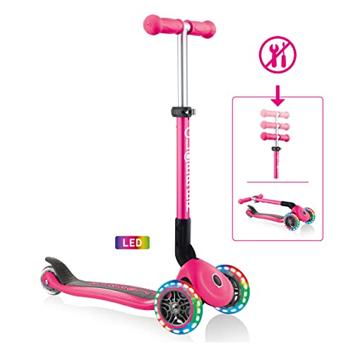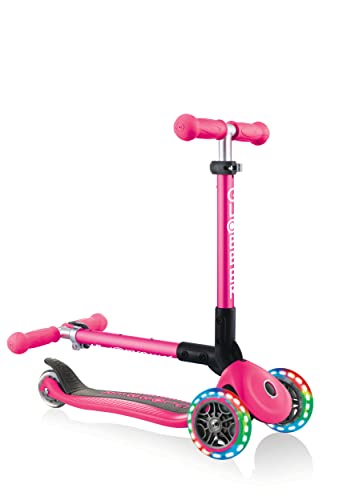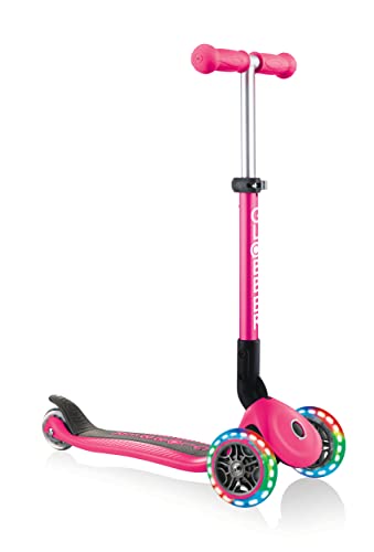 Globber - سكوتر جونيور قابل للطي بأضواء من جلوبر - لون وردي فاقع (Neon Pink)