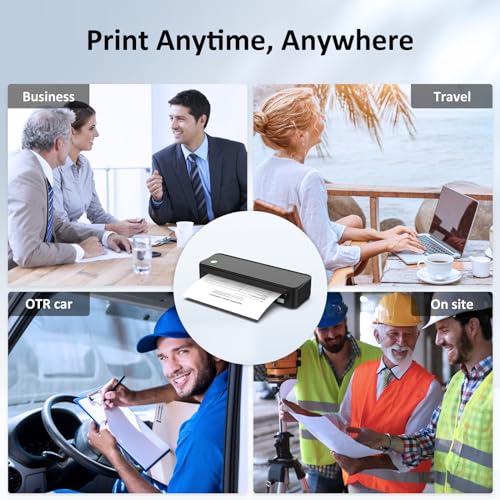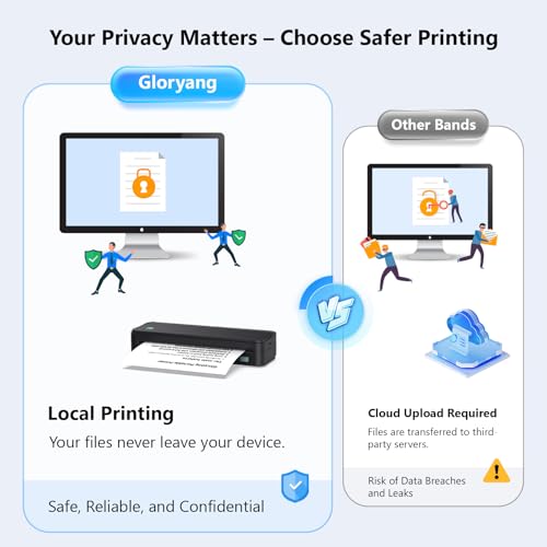 Gloryang - طابعة محمولة بدون حبر للسفر من جلوريانج، طابعة حرارية لاسلكية تدعم الورق الحراري مقاس 8.5 × 11 انش، ماكينة بلوتوث تتضمن حقيبة حمل و3 بكرات من الورق، اسود