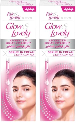 Glow & Lovely - جلو اند لوفلي كريم وجه جلو اند لوفلي مع فيتامين متقدم متعدد الفيتامينات للبشرة المتوهجة 18 غرام (عبوة من قطعتين)