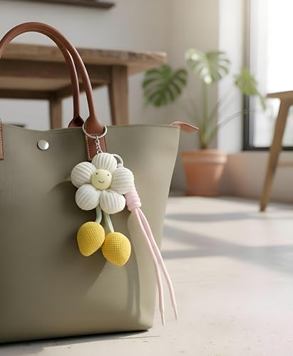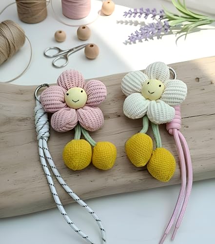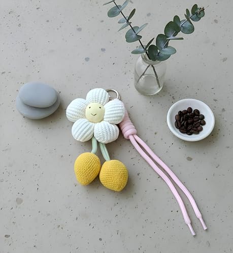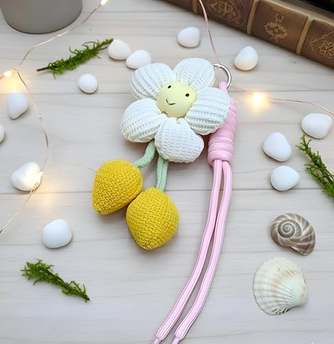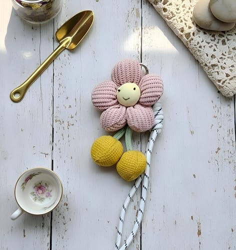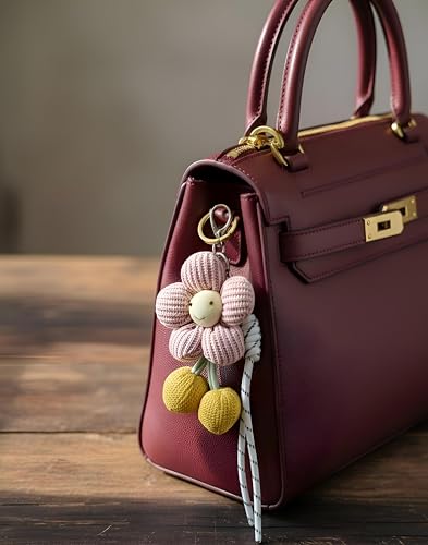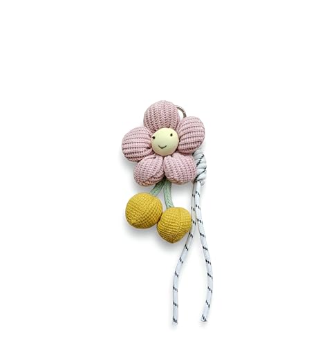 حلقة مفاتيح معدنية, سلسلة مفاتيح, سوار بينك, فلاور تشارم, كرات بوم بوم صفراء