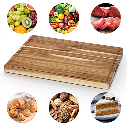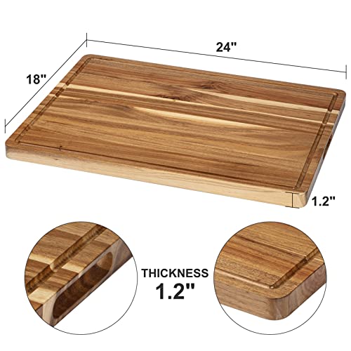 GlowSol - لوح تقطيع كبير من خشب الأكاسيا 60 × 45 سم لوح تقطيع خشبي كبير جدًا للمطبخ مع مقابض جانبية ومجرى للعصارة، لوح تقطيع ذو وجهين لتقطيع اللحوم والخضروات من جلوسول