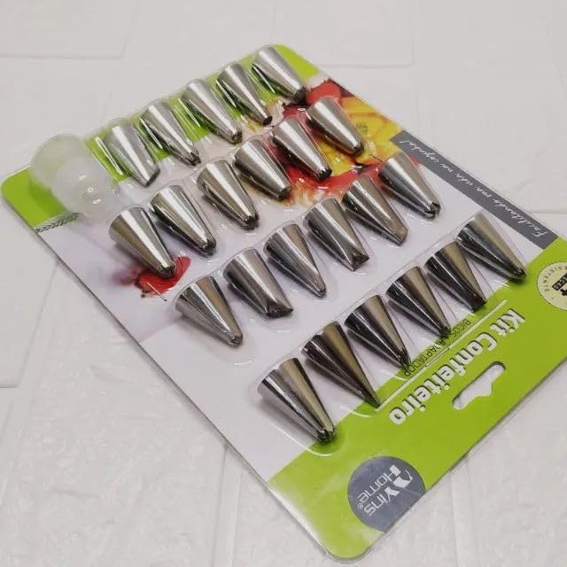 Gluck - مجموعة أكياس كريمية مزخرفة على شكل قمع معدني من 7 قطع من جلوك، متوسطة