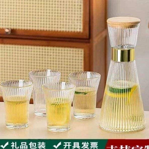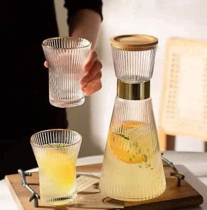 - طقم كاسات زجاج أنيقة مثالية لتقديم المشروبات.