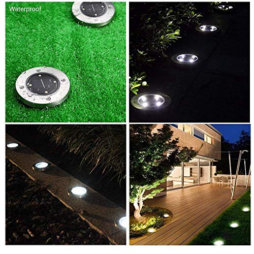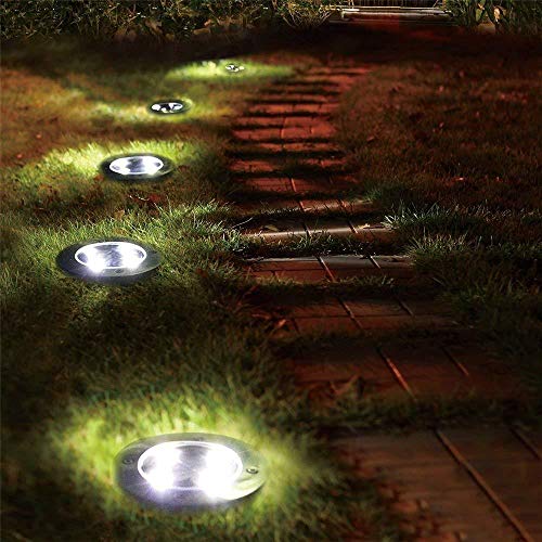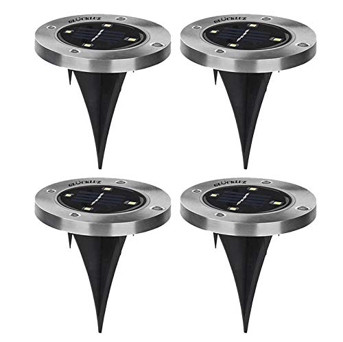 Gluckluz - مصابيح ارضية تعمل بالطاقة الشمسية للاستخدام في الحديقة ضوء ابيض للممرات والمناظر الطبيعية، اضواء المياه، مع مستشعر الظلام، تشغيل / ايقاف تلقائي، لممر الحديقة ساحة الممر (4 مصابيح، 4 ليد)