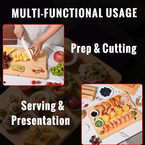 homish - الواح تقطيع بامبو غير سامة خالية من الصمغ، لوح تقديم متوسط من الخيزران الطبيعي، بدون بلاستيك، لوح تقطيع للحوم والفواكه والخضروات والجبن والجزار، صديق للبيئة، 15.7×14.2×0.8 انش
