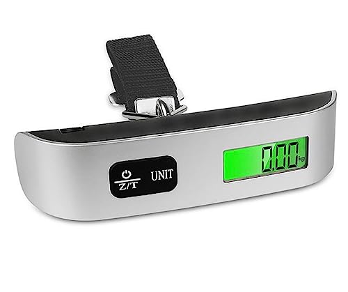 GLUN - ميزان رقمي لشنط السفر محمول وقابل للتعليق للسفر، ميزان وزن 50 كجم، لون فضي (للاستخدام المنزلي فقط) من جلون