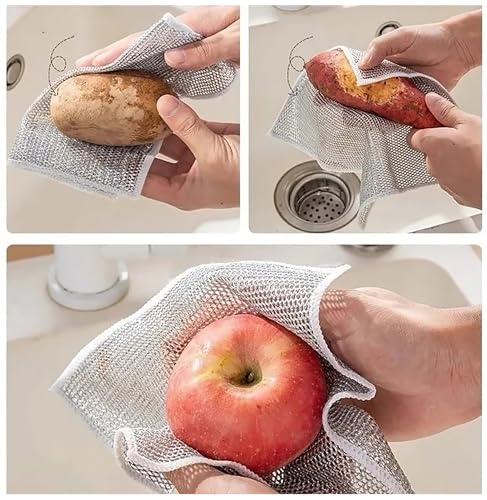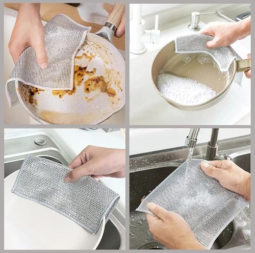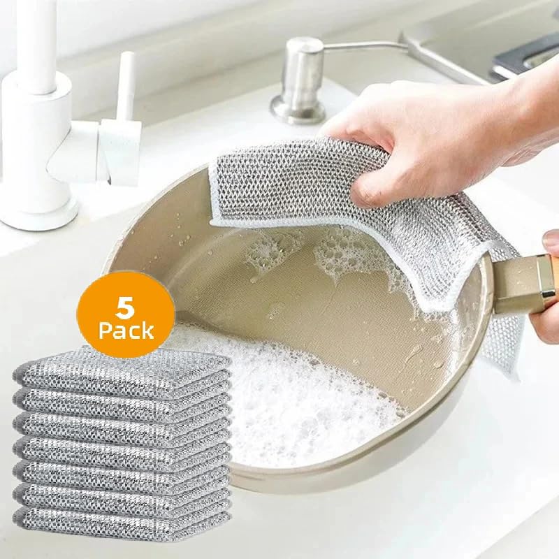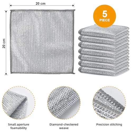 GLUN - فوطة تنظيف الأطباق السلكية مقاس 20 سم × 20 سم، عبوة من 5 قطع متعددة الأغراض غير قابلة للخدش للاستخدام الرطب والجاف، تنظف وتنظف الأطباق وسطح الموقد والبلاط من جلون®