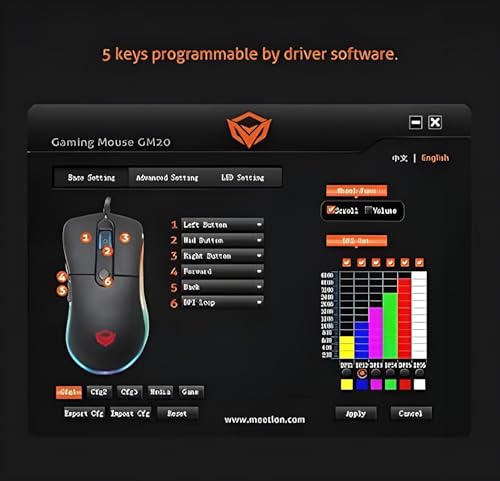 عام - ماوس الألعاب GM20 – دقة 4800 DPI، إضاءة RGB، شرائح مخصصة للألعاب، أزرار قابلة للتخصيص